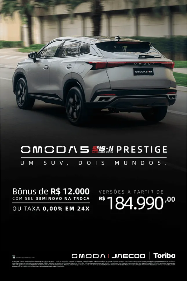 A inovação chegou às ruas com OMODA | Jaecoo — duas marcas visionárias que estão transformando o conceito de mobilidade premium. Design futurista, tecnologias inteligentes e alto padrão de segurança se unem para oferecer uma experiência de direção sofisticada, conectada e surpreendente. Conheça essa nova geração de SUVs na Toriba OMODA | Jaecoo e descubra por que dirigir nunca mais será como antes.